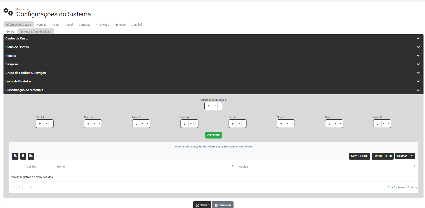 Cadastro Geral>Fórmulas
