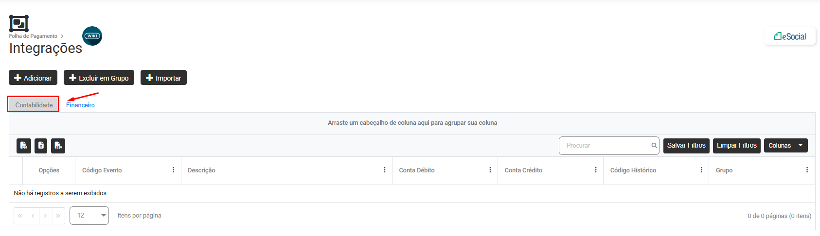 Se nas Configurações do Módulo Folha de Pagamento da Empresa, aba Integrações você definir que irá integrar o Módulo Financeiro será habilitado o menu Folha de Pagamento>Cadastros>Integrações