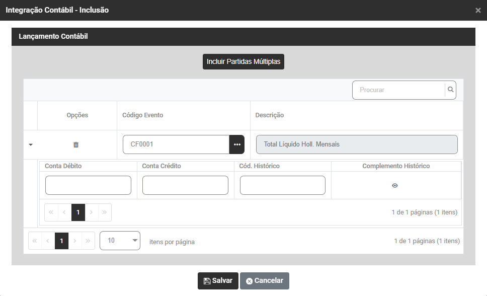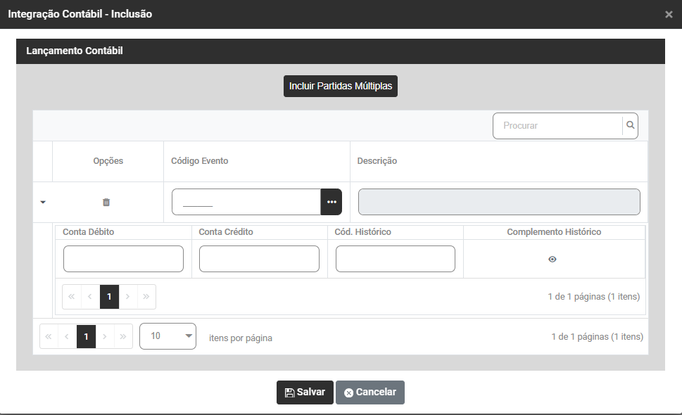 c) Para o cadastro do lote contendo TODAS as contas de débito e crédito clique em Incluir Partidas Múltiplas