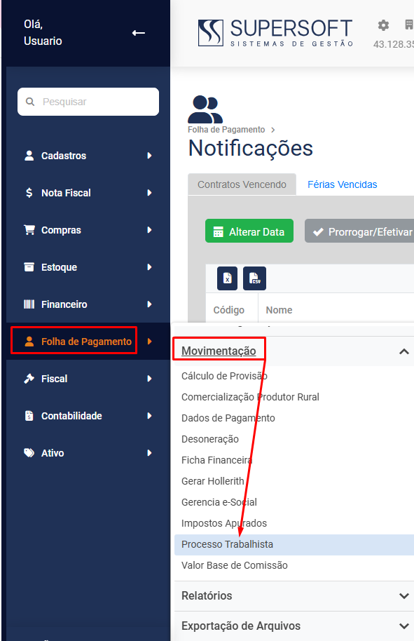 Para cadastrar os Processos Trabalhistas você deverá acessar o menu Folha de Pagamento>Movimentação>Processo Trabalhista