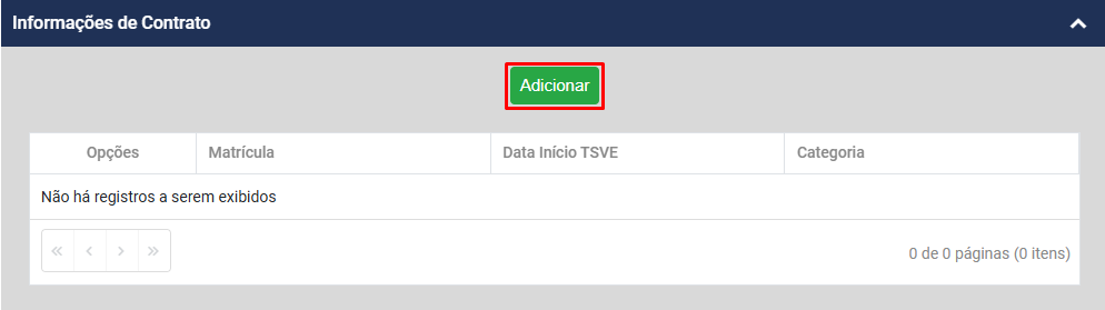 Na aba Informações de Contrato você deverá clicar novamente no botão Adicionar
