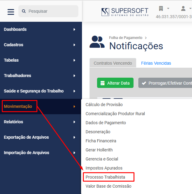 Para cadastrar os Processos Trabalhistas você deverá acessar o menu Folha de Pagamento>Movimentação>Processo Trabalhista