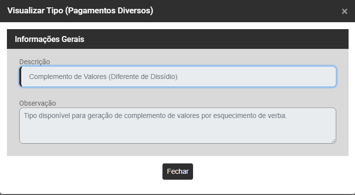 Cadastro de Tipos (Pagamentos Diversos)