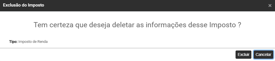Editar - quando acessado irá apresentar as informações do Imposto com as seguintes informações: