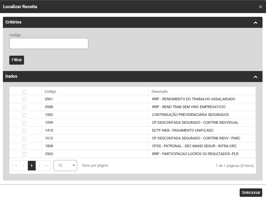Com as informações de cada imposto apurado e que compõe a totalização da Guia de Recolhimento