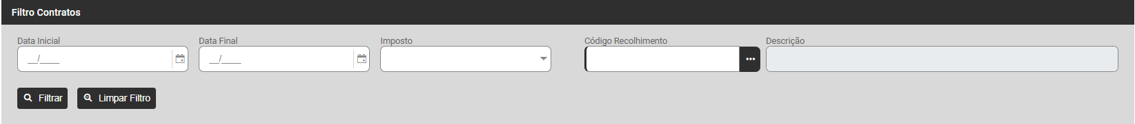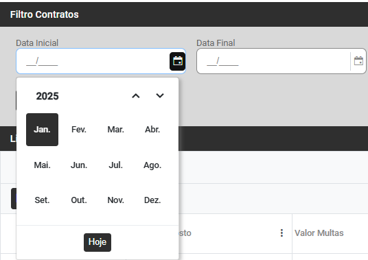 Através do campo Filtro Contratos você conseguirá filtrar para que o Módulo traga a informação que você precisa visualizar