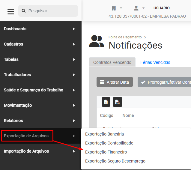 ..... Exportação para o Módulo Financeiro