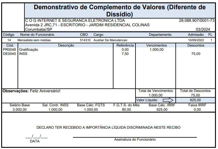 3) GERAÇÃO DE COMPLEMENTO MENSAL (funcionários)