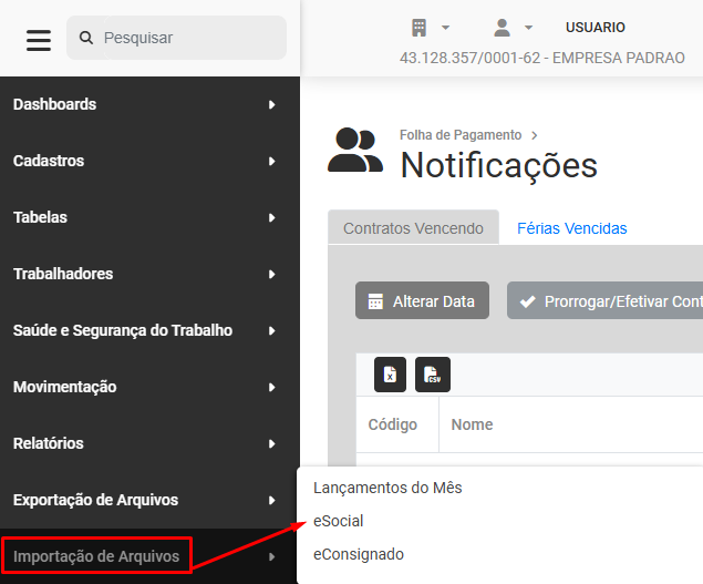 Importação do XML do eSocial