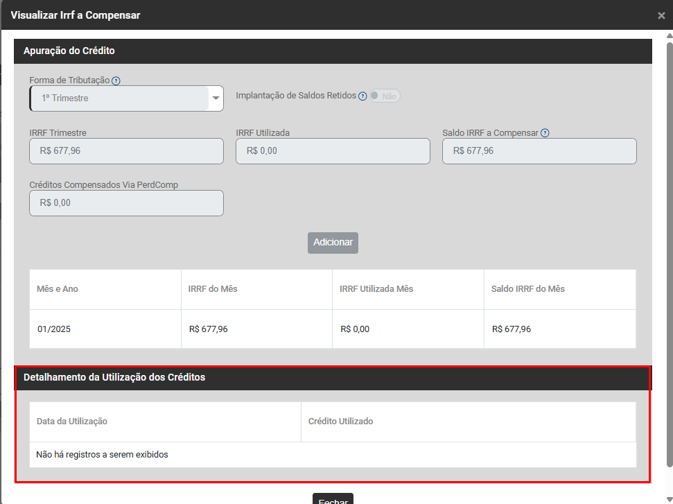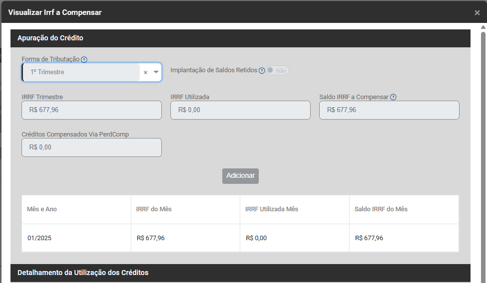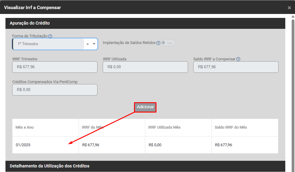 Clique no botão Adicionar IRRF a Compensar e informe: