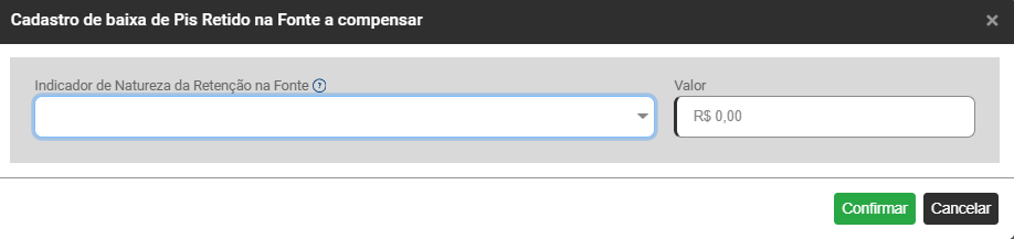 Clique no botão Adicionar PIS RF a Compensar e informe: