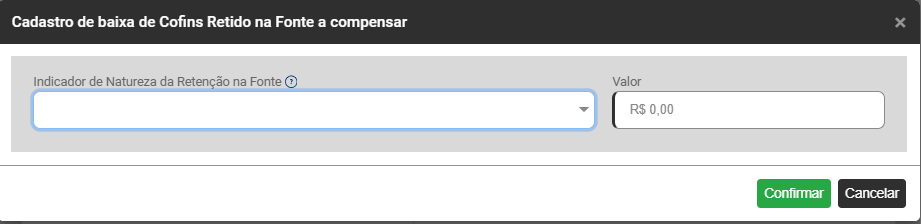 Clique no botão Adicionar COFINS RF a Compensar e informe: