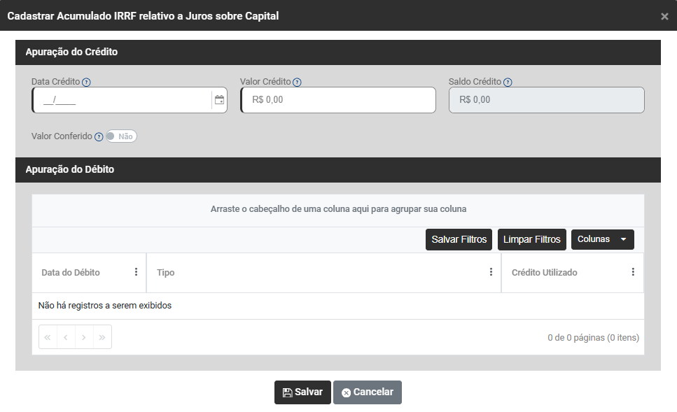 • Valor do Crédito - É o valor do crédito sobre o Juros de Capital a ser compensado.