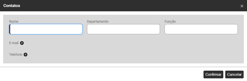 Quando você define Pessoa Jurídica o Sistema habilita também a aba Contatos, clique no botão Adicionar e defina