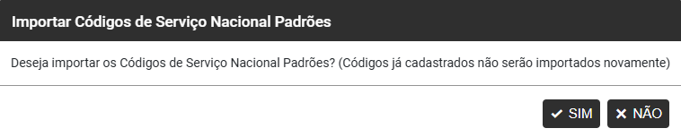Será apresentada a mensagem questionando se você "Deseja importar os Códigos de Serviço Nacional Padrões ?