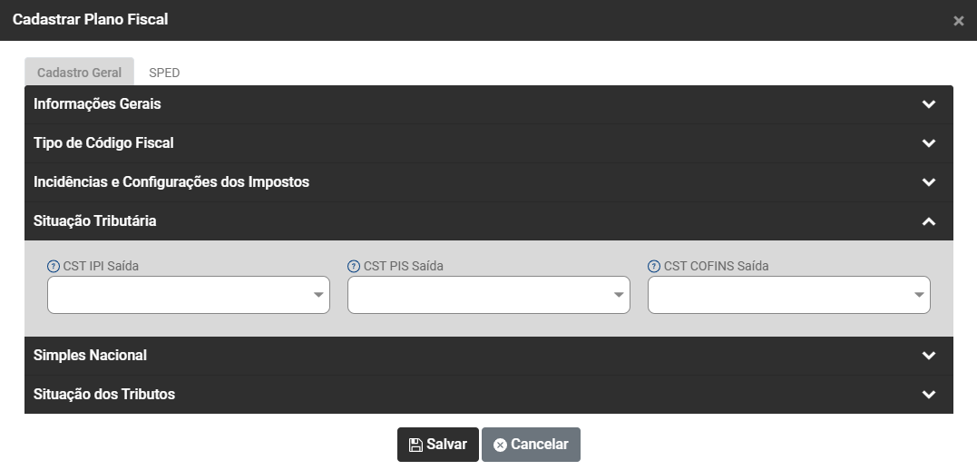 - CST COFINS Saída - A CST COFINS preenchida nesse campo será levada automaticamente para a escrituração das Notas no Livro de Saída com esse CFOP.