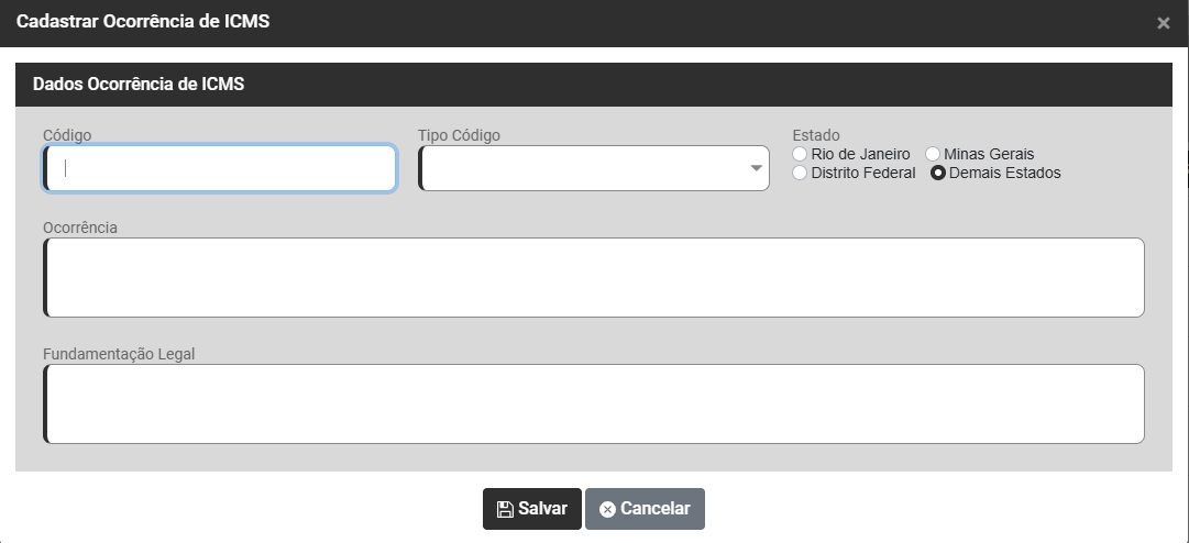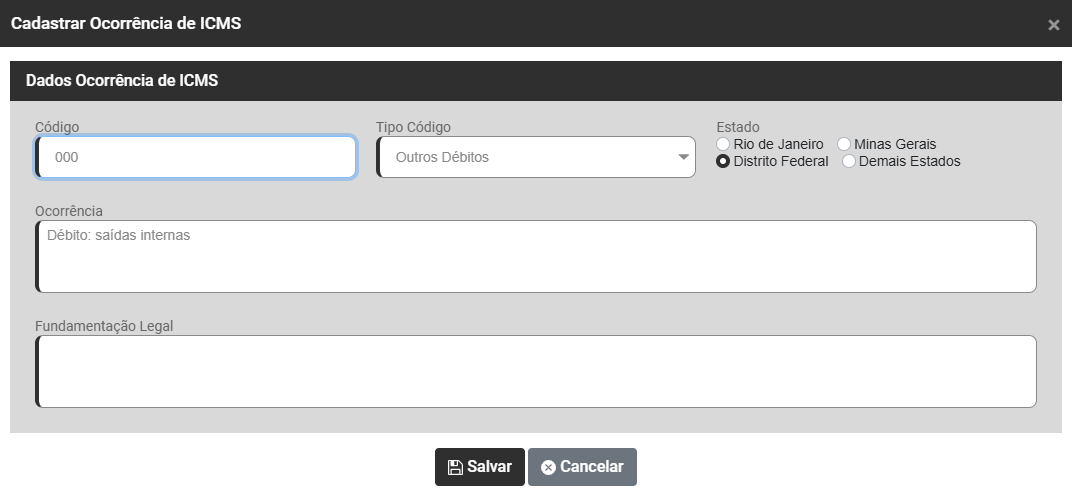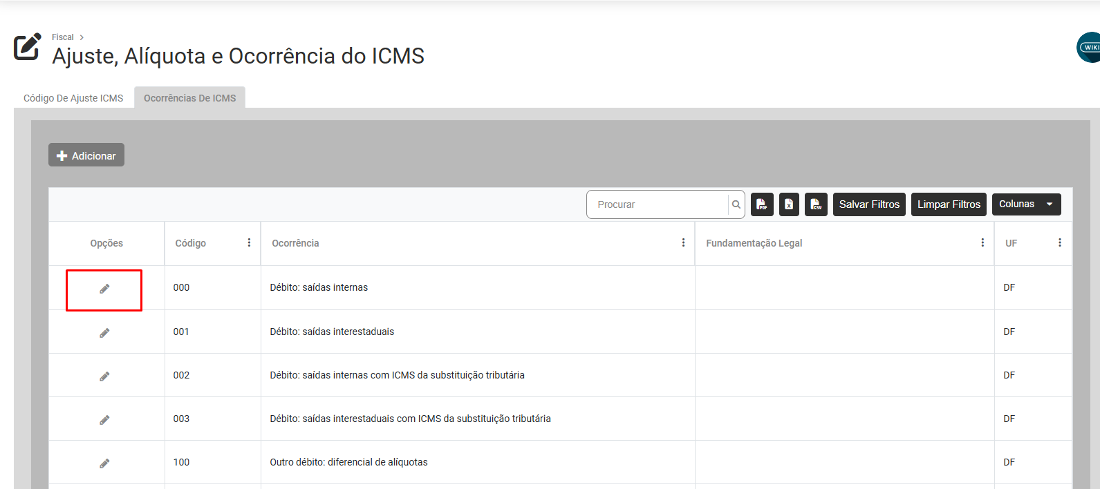 O Sistema possui cadastradas as Ocorrências de ICMS se você editar uma ocorrência já cadastrada pelo Sistema