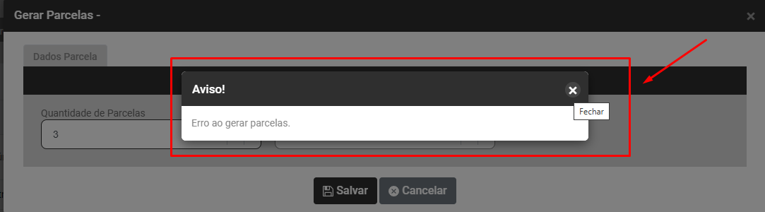 Clique no botão Gerar Parcelas existente na tela