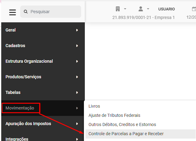 Para que você gere as Parcelas, deverá acessar o menu Movimentação>Controle de Parcelas a Pagar e Receber