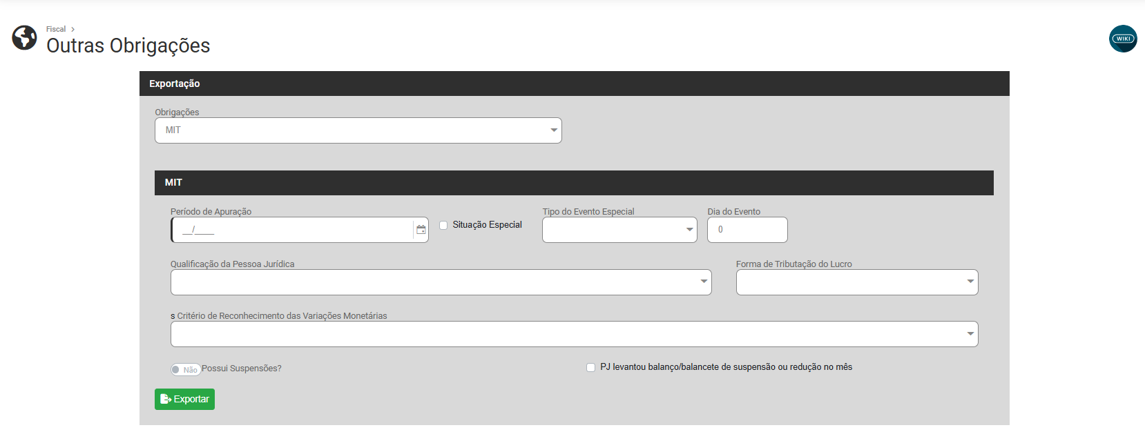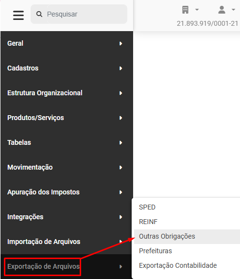 Exportação para Outras Obrigações