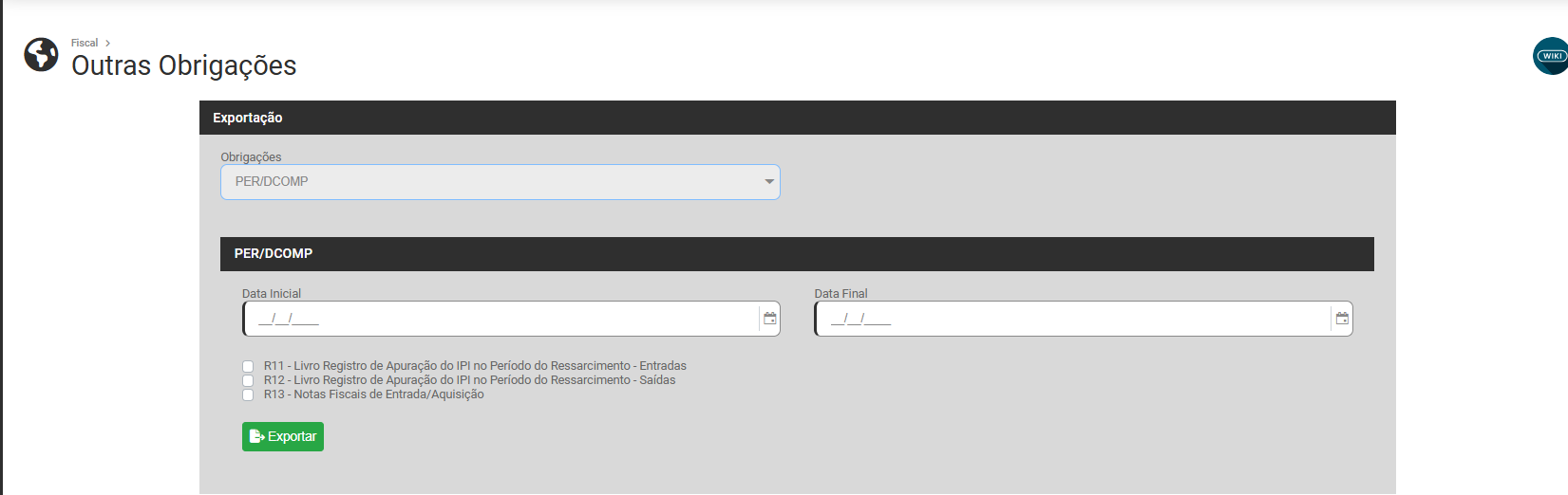 Será possível realizar a geração/exportações das Obrigações:
