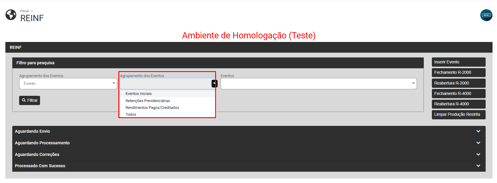 O evento sairá da aba Aguardando Envio e irá para a aba Aguardando Processamento