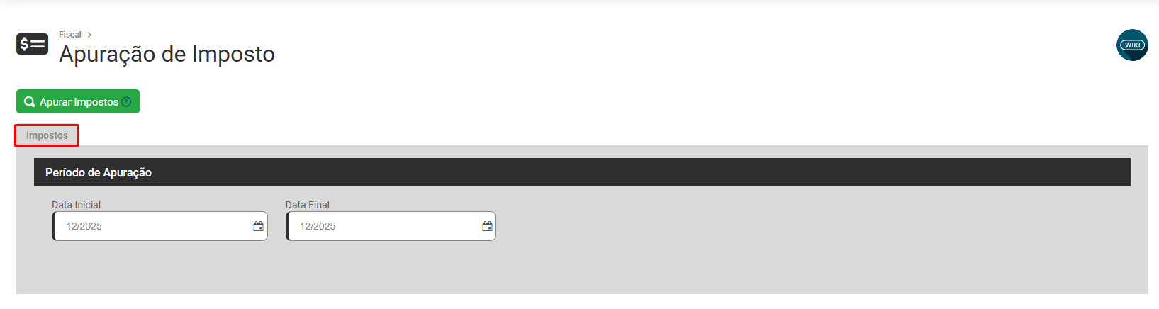 Será apresentado a tela com a aba Impostos