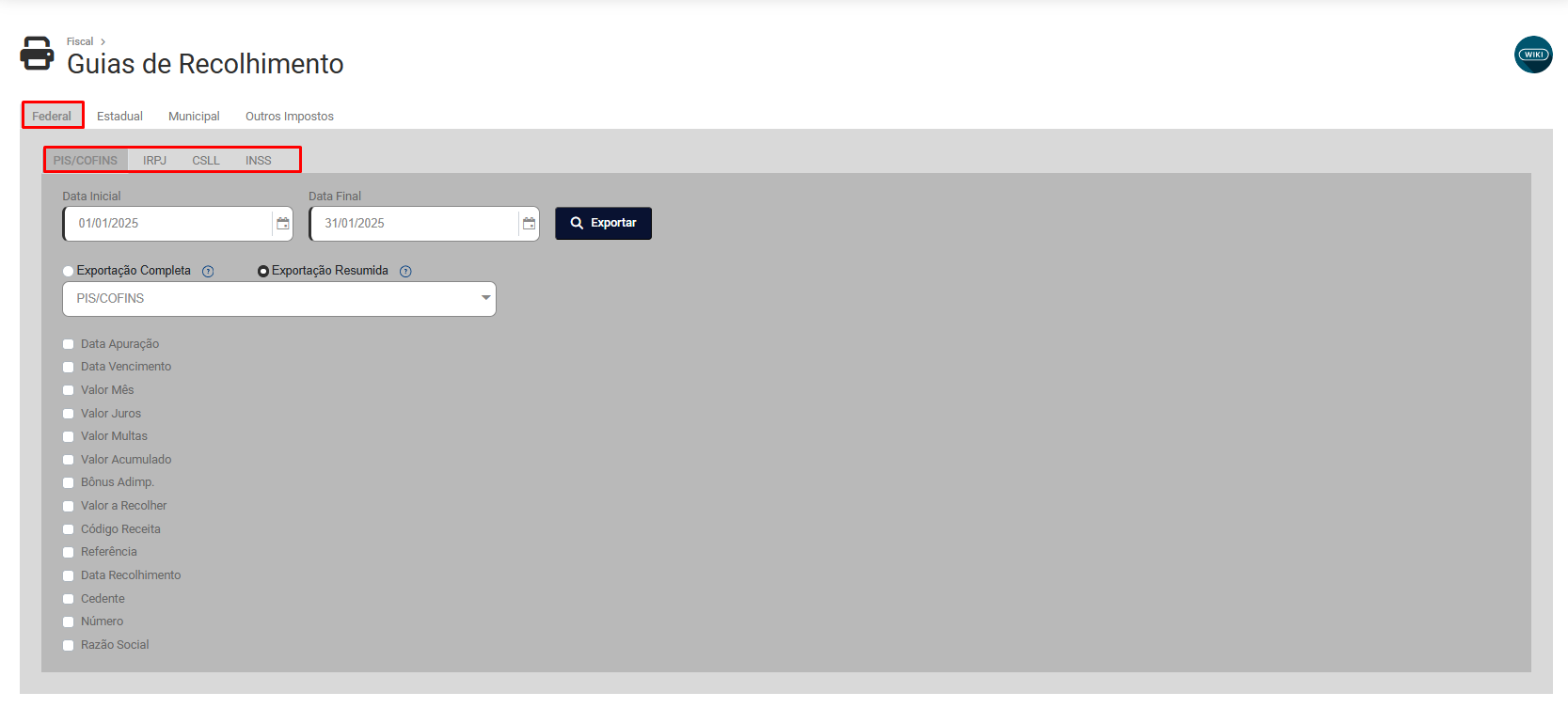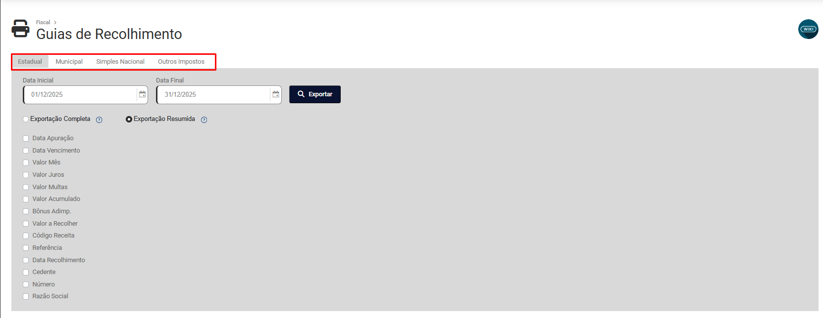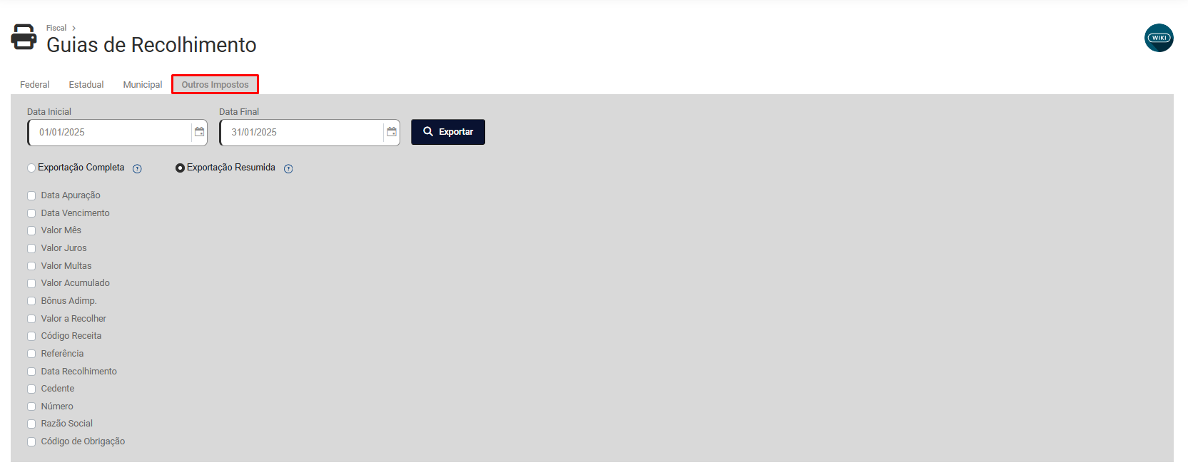 - Exportação Resumida - Selecionar as informações que deseja exportar