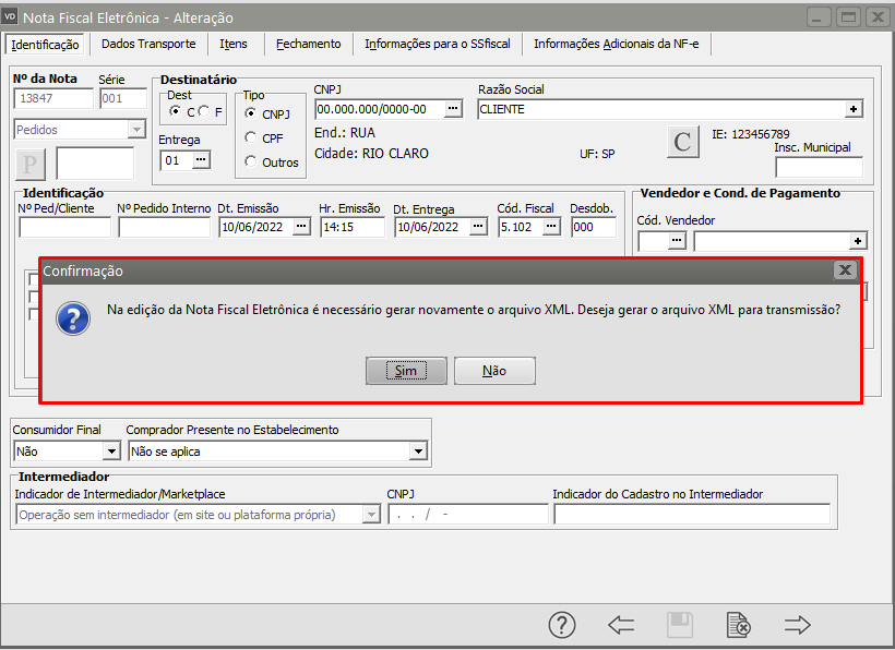 O Sistema irá questionar se você deseja gerar o arquivo XML para transmissão, clique em SIM