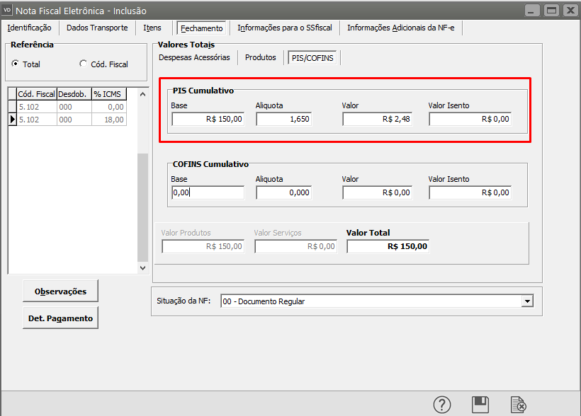 ... Rejeição 602: Total do PIS difere do somatório dos itens sujeitos ao ICMS