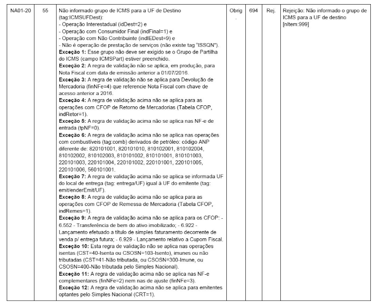 - A regra de validação não se aplica, em produção, para Nota Fiscal com data de emissão anterior a 01/07/2016
