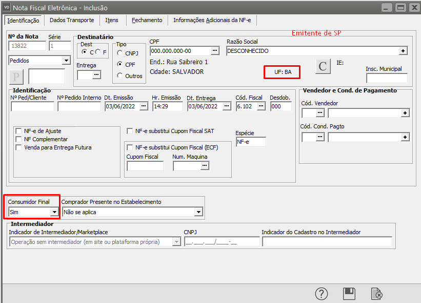 Depois de conferidas as informações, salve a NF-e, gere um novo XML e transmita para a Sefaz.