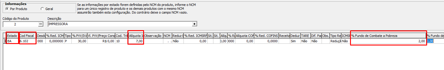 4 - Verificar se no menu Manutenção>Produtos>Informações por Estado foram cadastradas as informações para a correta emissão da NFe.