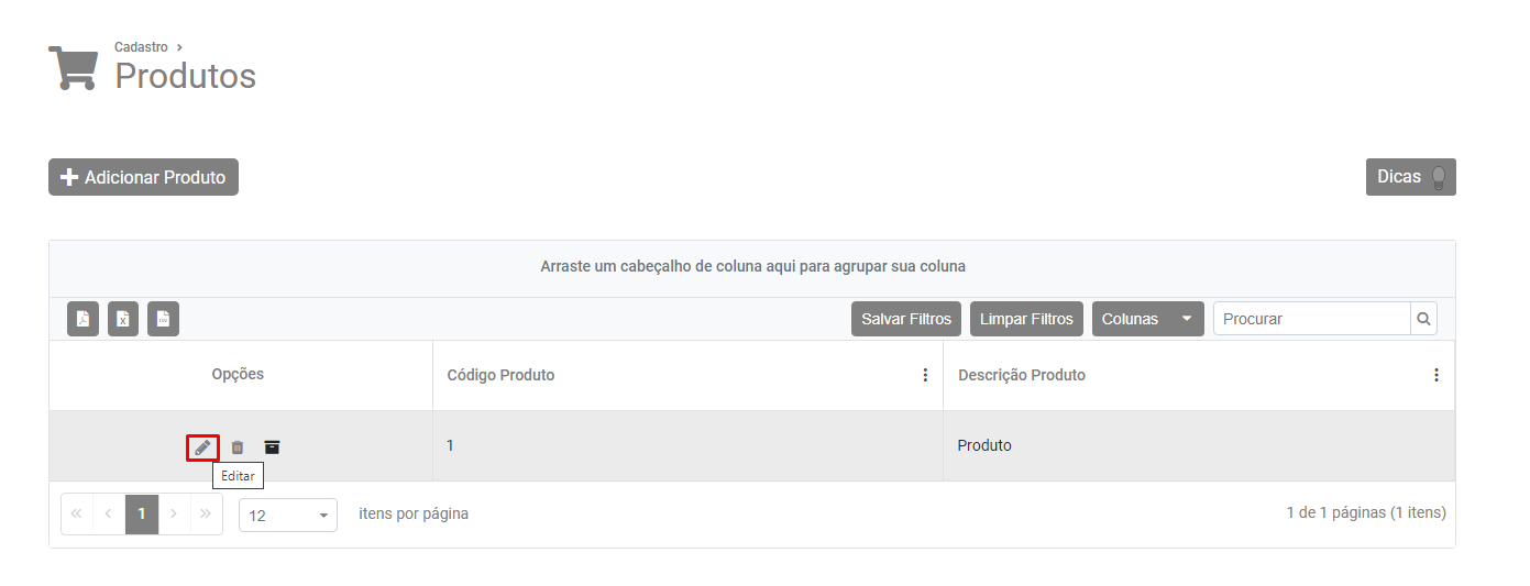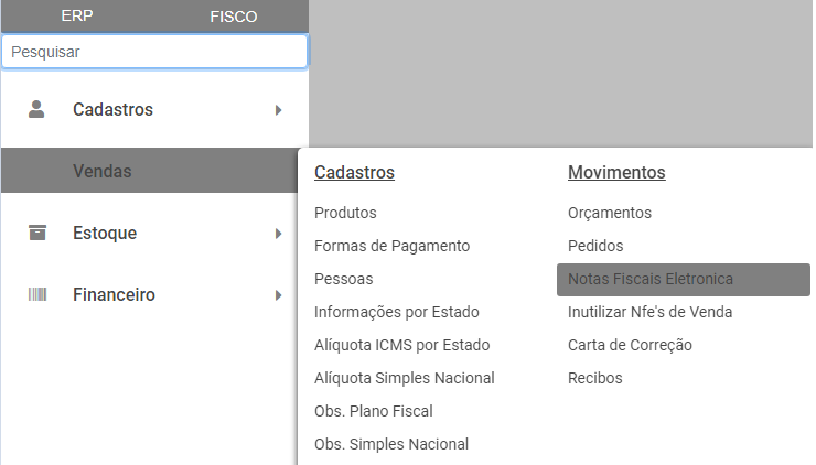 Depois de ter feito o cadastro, acesse o menu Vendas>Produtos