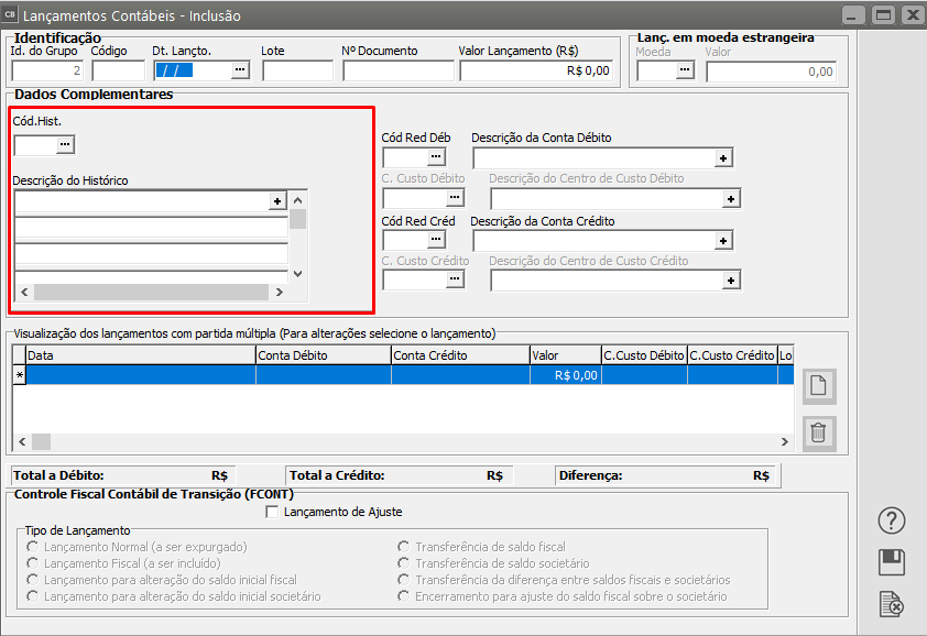 Correção: Todo lançamento envolvendo o PL, precisa obrigatoriamente ter o código do histórico informado.