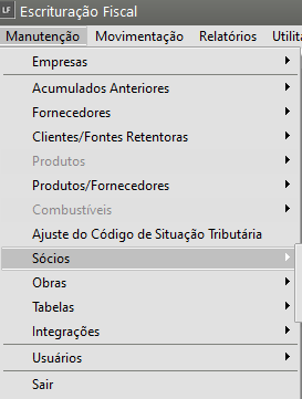 Acesse o menu Manutenção>Sócios>Manutenção,