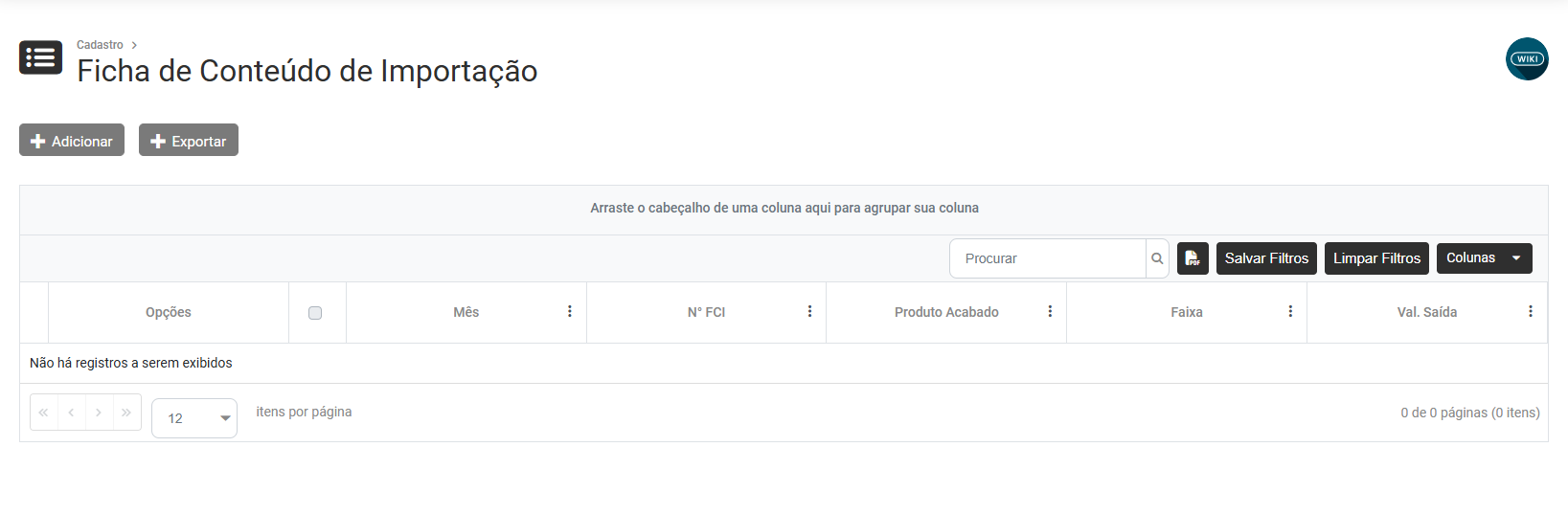 .... Cadastro da FCI (Ficha de Conteúdo de Importação)