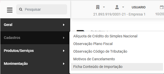 - Mês - Período de geração da Ficha de Cont. de Importação.