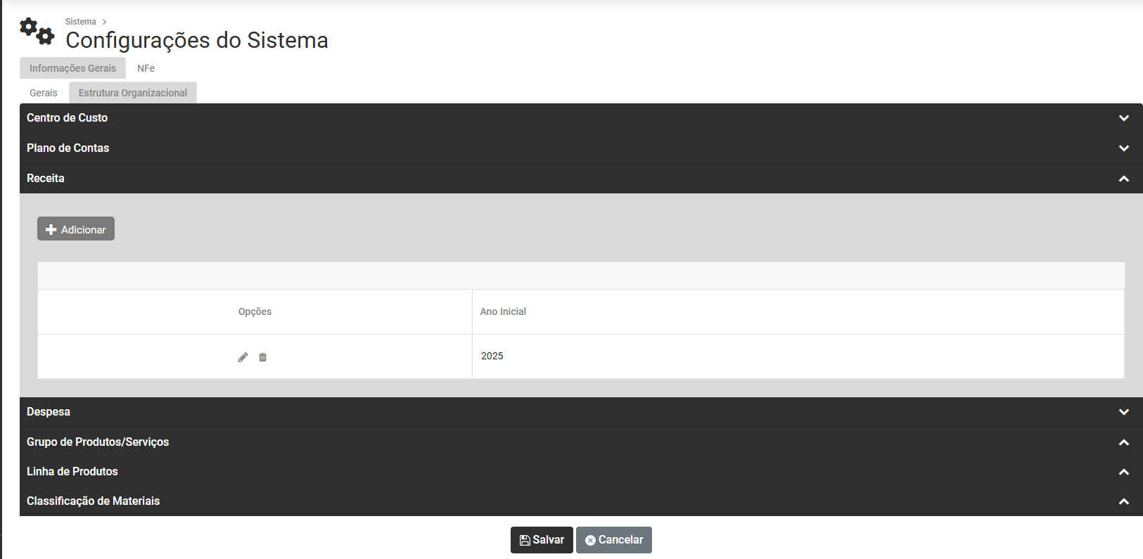 Para cadastrar as Receitas que serão utilizadas pela Empresa, acesse o menu Configurações