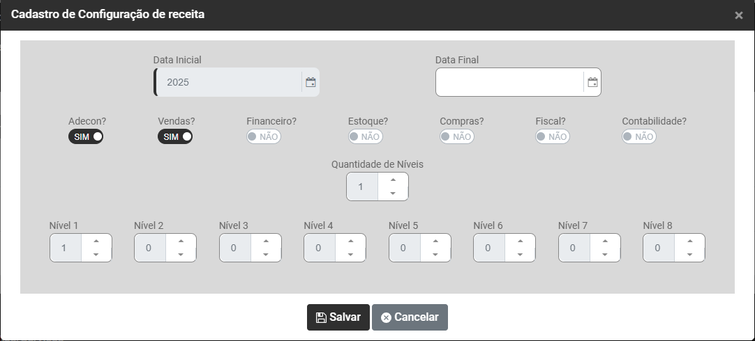 - Data Final - se essa data for definida, não será possível a utilização de Receita após a mesma